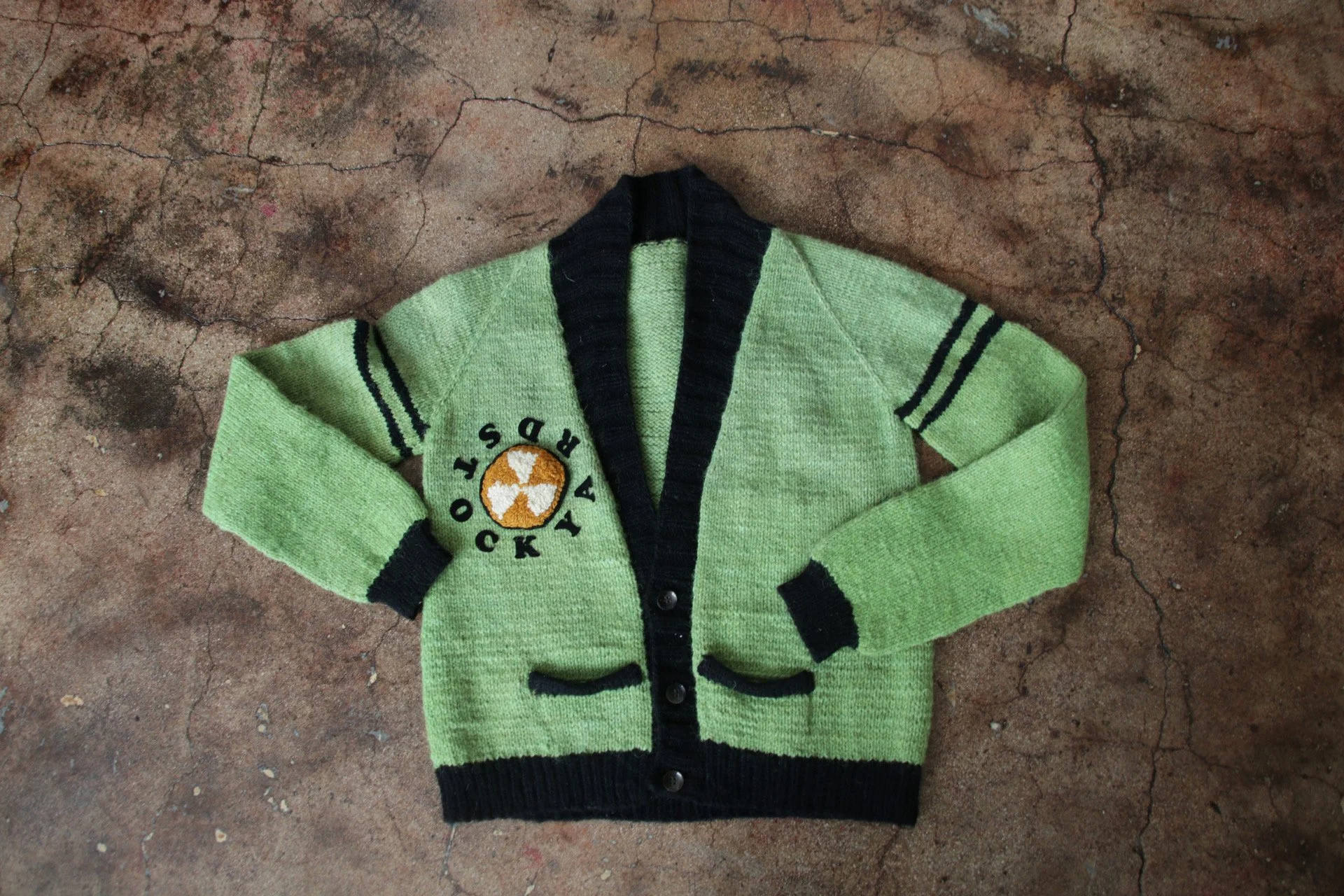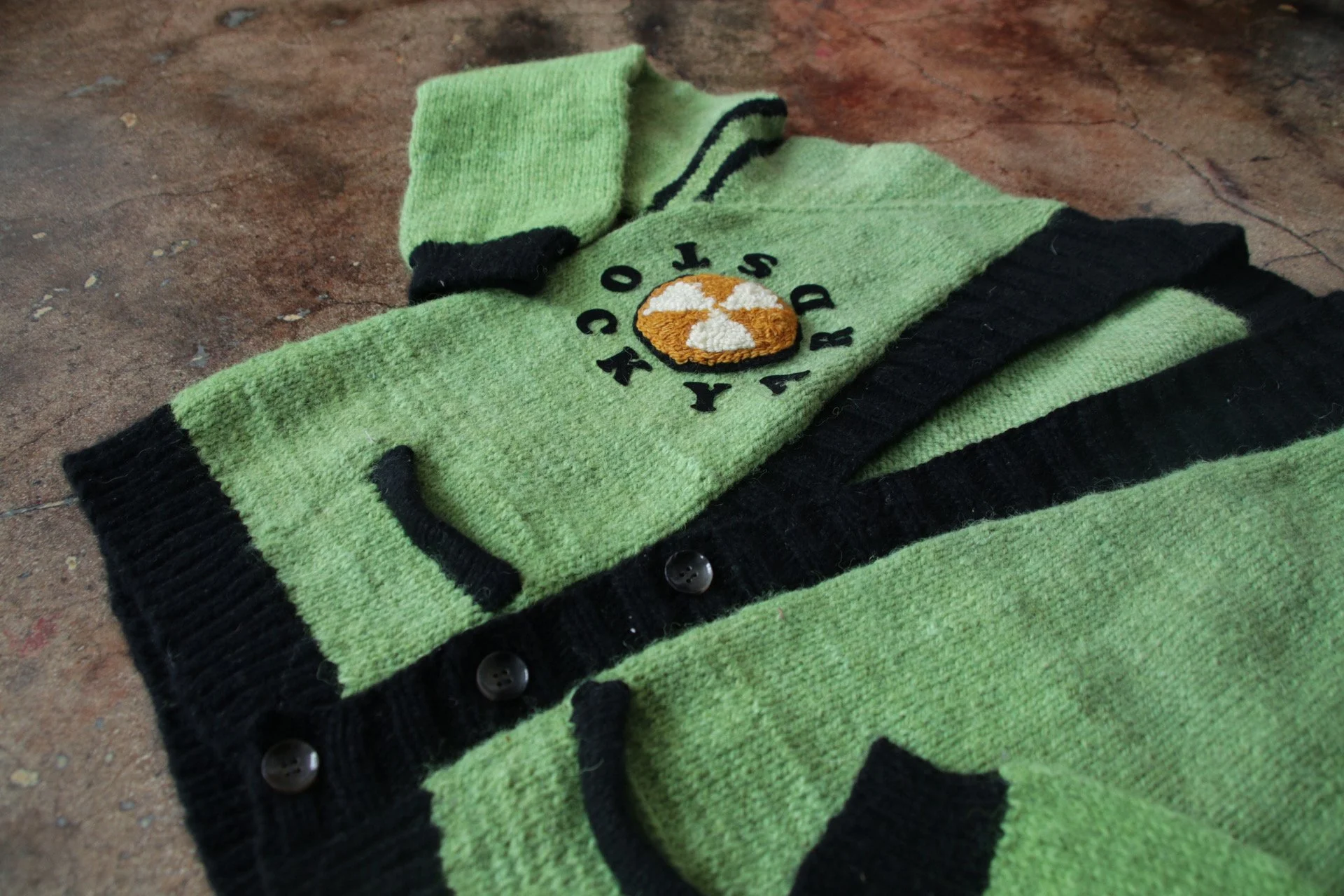 This sweater was designed in collaboration with Jim Duignan for his work of 25 Years of Art and Radical Pedagogy of the Stockyard Institute. Hand knit with locally dyed wool and upcycled cashmere.